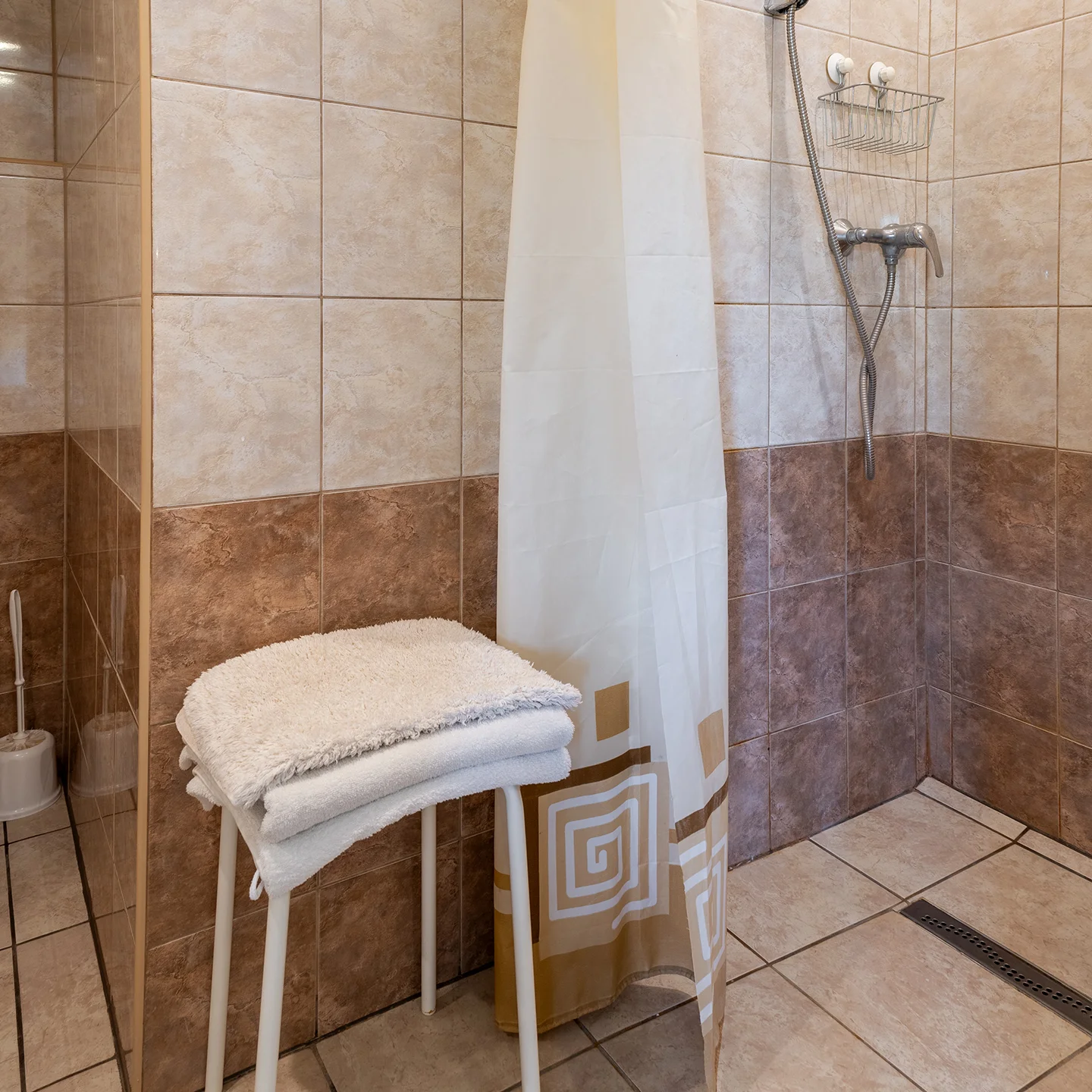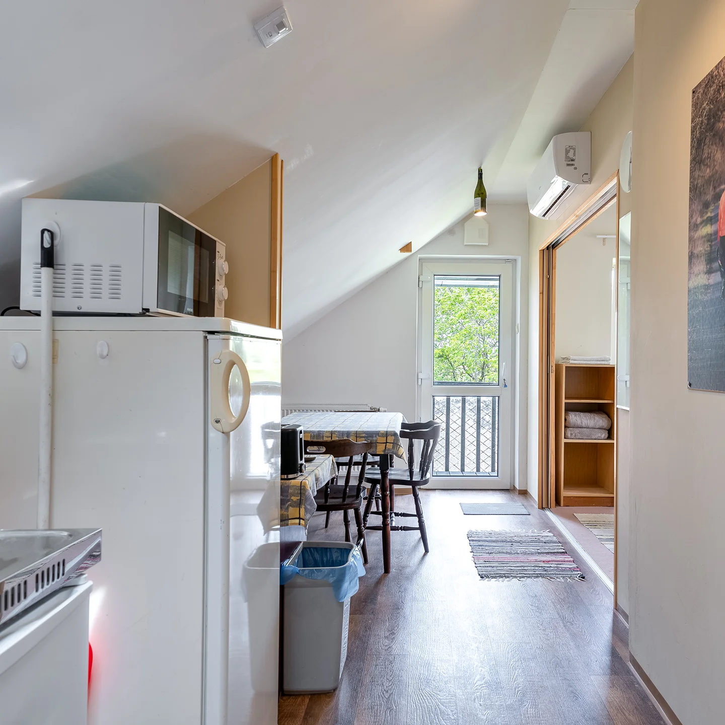 Az 55 nm-es, önálló lakrész előszobából, nappali-étkezőből, két hálószobából és két saját fürdőszobából áll. A fürdőszobákban mosdó, zuhanyzó, valamint WC is található. A konyhasarok az étkező mellett kapott helyet, ahol két hűtő és elektromos főzőlapok, valamint mikró is rendelkezésre áll, emellett vízforraló és kávéfőző, illetve edények is biztosítottak a főzéshez. Az apartman családok és kisebb társaságok számára is alkalmas.